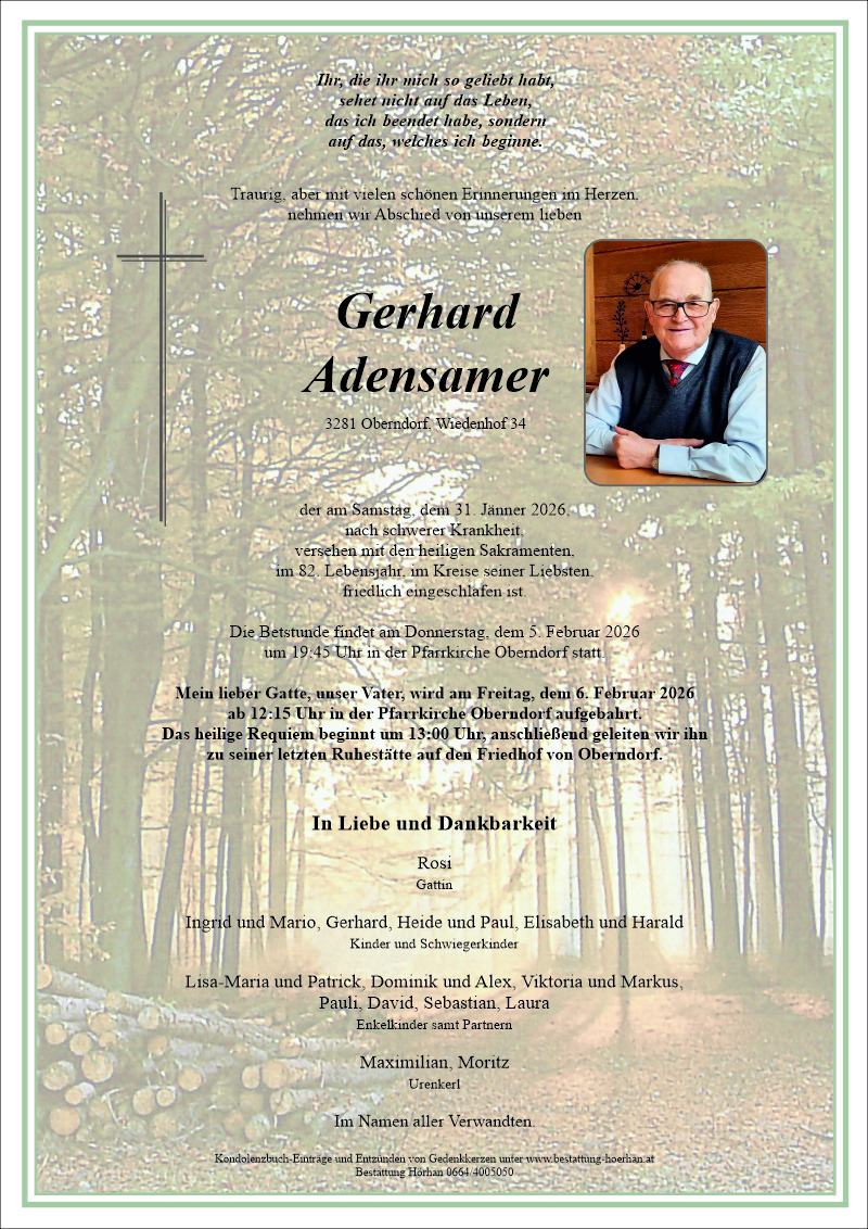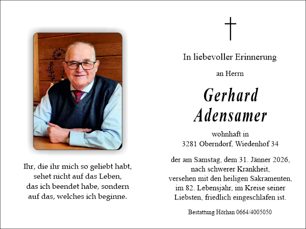 Sehr geehrte Fr. Adensamer, liebe Liesi, lieber Harald und alle Angehörigen!