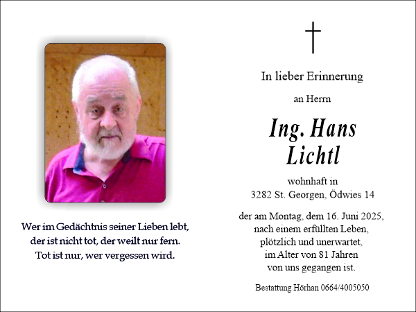 Aufrichtige Anteilnahme! Bestattung Hörhanentzündet am 19.06.2025 -