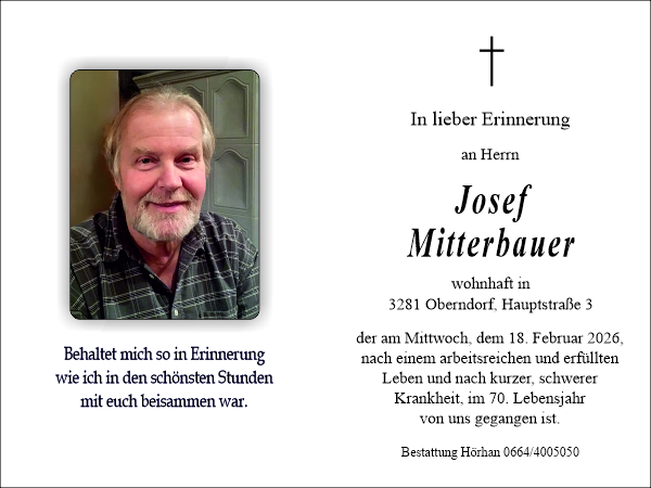 Eine gute letzte Reise Josef. rip Hans u. Maria E.entzündet am 23.02.2026
