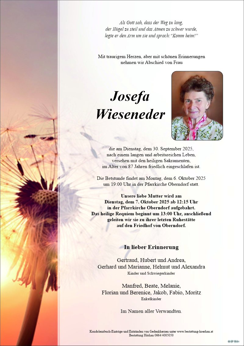 Trauerfeier am: Dienstag, 07. Oktober 2025