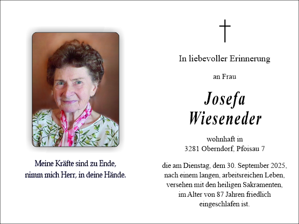 Herzliches Beileid. Fam. Wieseneder, Wiesentzündet am 06.10.2025