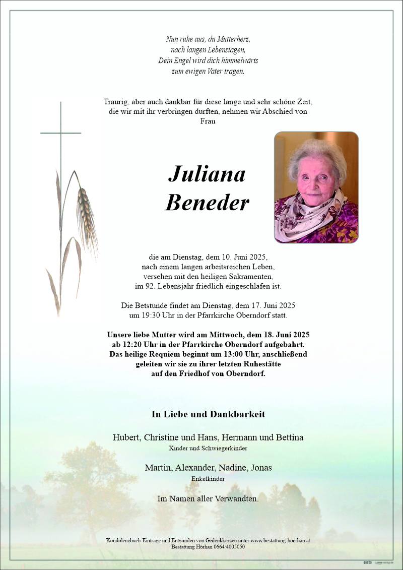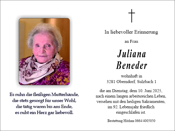 Liebe Beneder Oma, ruhe in Frieden! Fam. Wipplentzündet am 17.06.2025