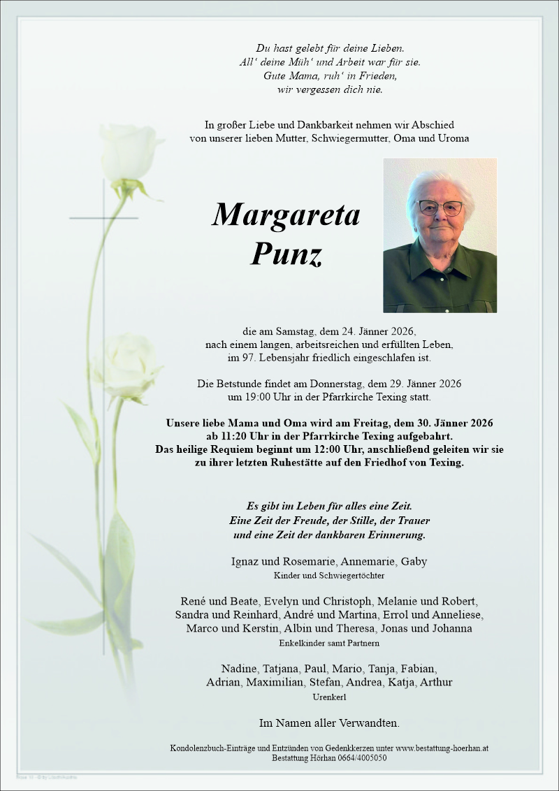 Ruhe in Frieden! Bestattung Hörhanniedergelegt am 26.01.2026 -