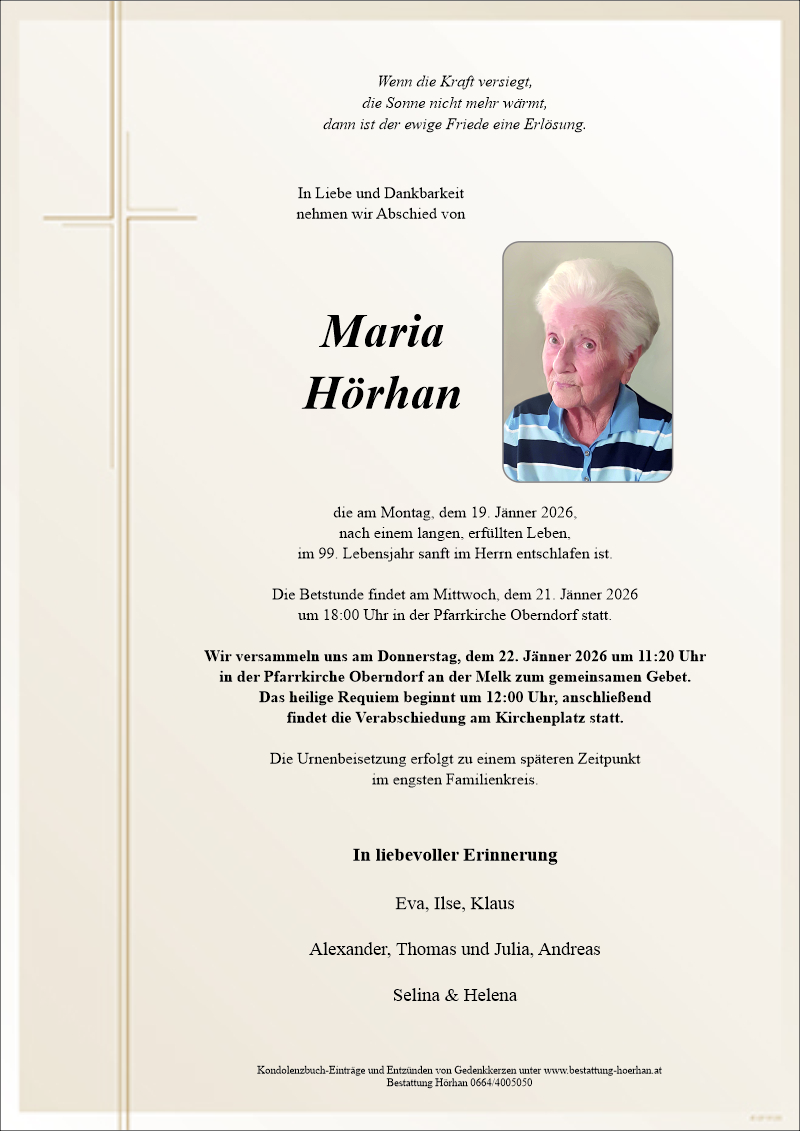 In lieber Erinnerung, Familie Hörhanentzündet am 19.01.2026